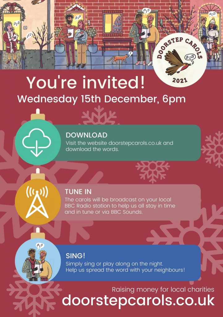 The details of the songs that will be sung and how to tune into the radio is in the attached web link (https://www.doorstepcarols.co.uk/Documents/Invite_BBC_Radio-A5_2.jpg).
